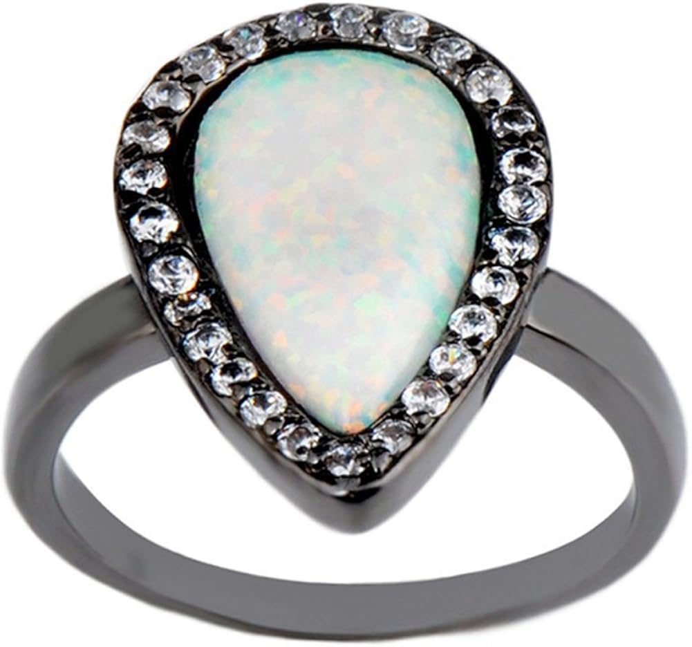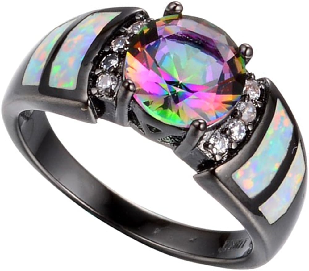 Amazon Com Nitlovely Elegant Rainbow Opal Ring Fashion White Cz