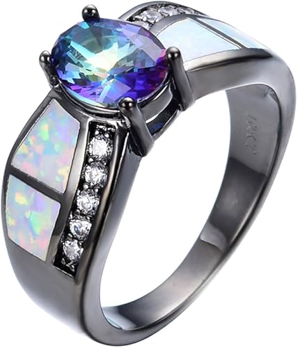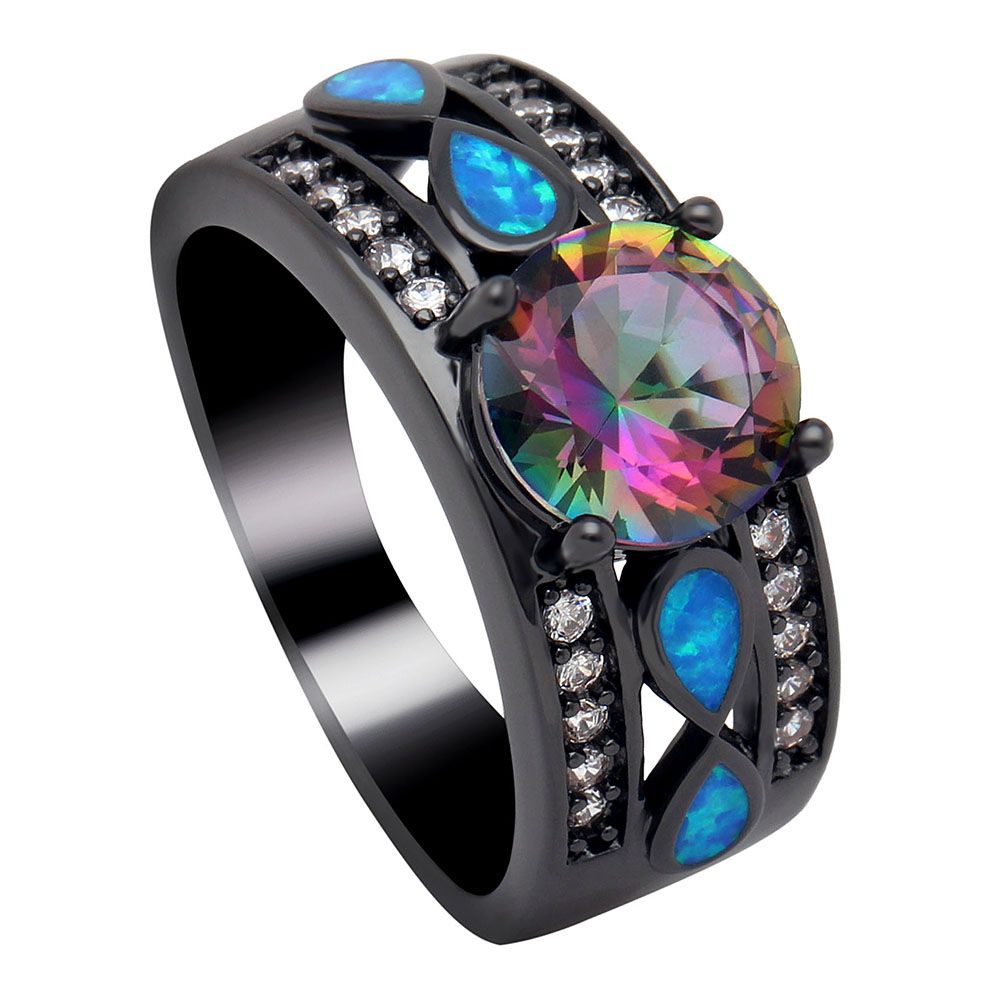 Amazon Com T Jewelry Rainbow Opal Stone For Women Ring Black Gold