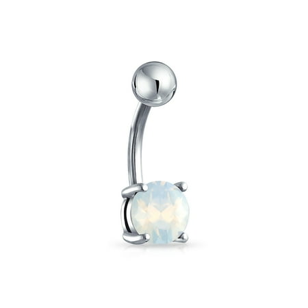 White Rainbow Opalite Solitaire Navel Bar Belly Ring For Women316l