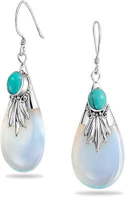 Rainbow Opalite Moonstone Handcrafted Earrings Long Teardrop Opal
