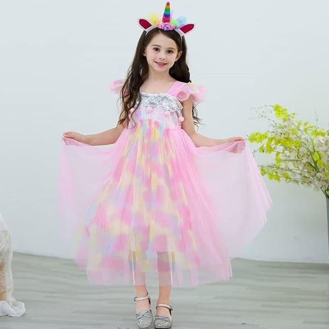 Promo Bajukiddie Princess Rainbow Pink Dress Anak Perempuan Gaun