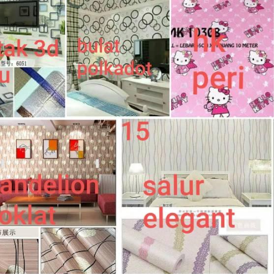 Order Wallpaper Dinding 45cm 10m Salur Hijau Pink Biru Rainbow