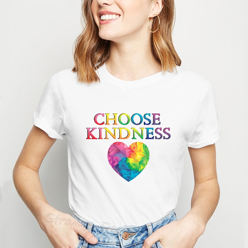 Rainbow Choose Kindness Letter Love Women T Shirts Female Clothes