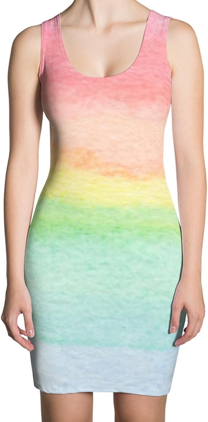 Rainbow Dress For Women Adults Pastel Rainbow Ombre Dress Tight
