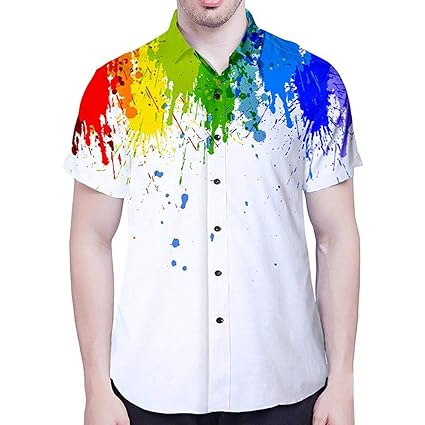 Buy Alivegot Men S Button Down Shirts Rainbow Print Short Sleeved