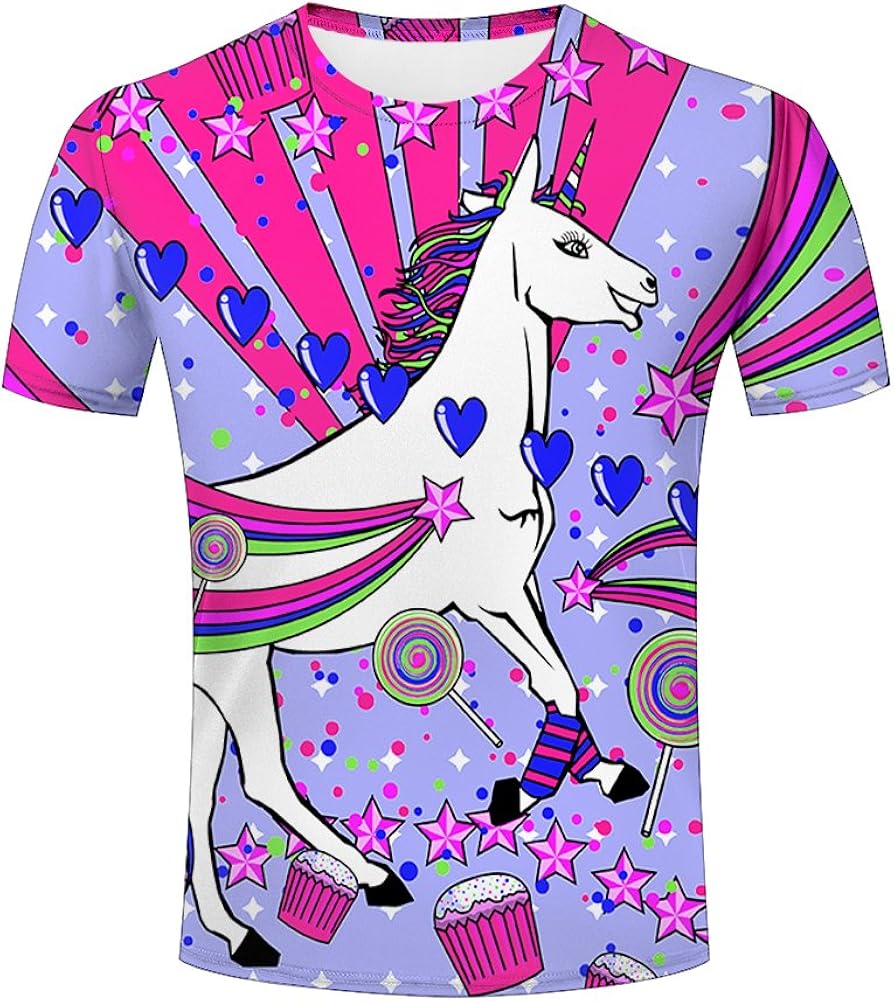 Amazon Com Jiacool Men 3d Print Unicorn Rainbow Fashion Casual T
