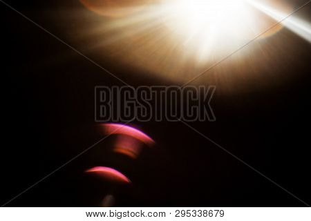 Lens Flare Light Over Black Background Easy To Add Overlay Or