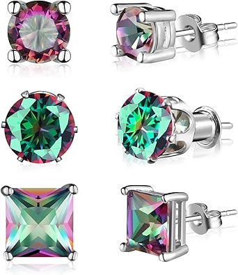 Amazon Com 3 Pairs Rainbow Quartz Earrings Stainless Steel Anti