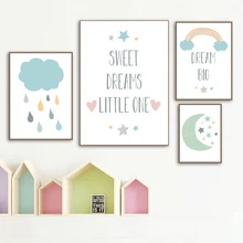 Pink Rainbow Cloud Picture Nursery Quotes Child Poster Minimalist Wall Art Canvas Print Painting Nordic Baby Kids
