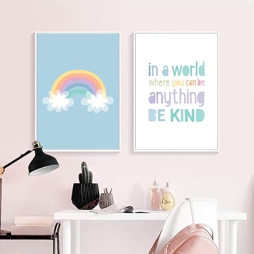 Gjfkd Rainbow Nursery Quotes Child Poster Canvas Wall Art Print Simple Quotes Painting Decor Picture Kids Bedroom