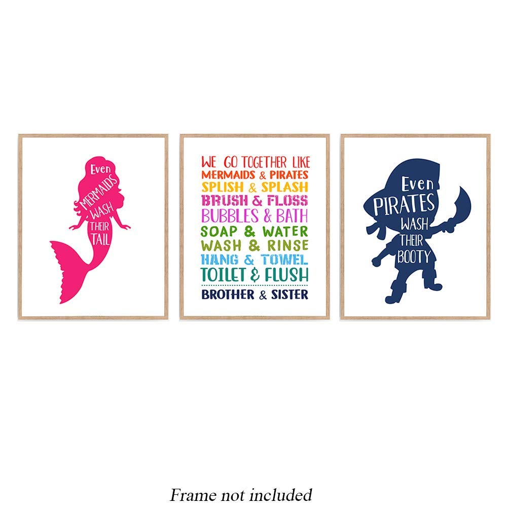Amazon Com Pink Mermaid Nautical Bath Quotes Print Set Of 3 Art Rainbow Sayings Kids Bathroom Poster Pirates