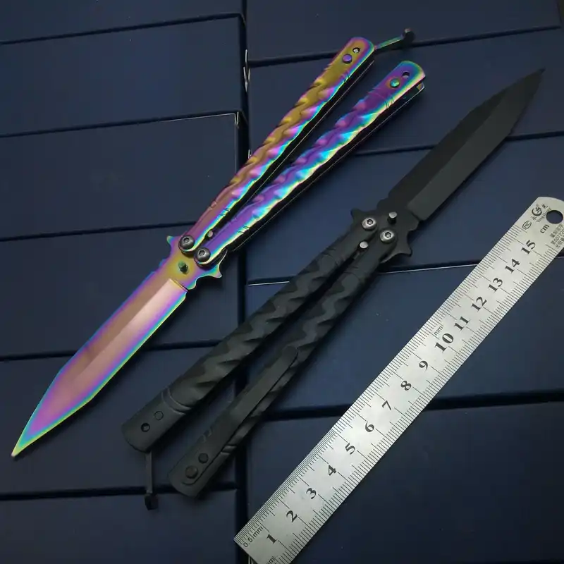 Csgo Practice Butterfly Balisong Trainer Tactical Knife Rainbow
