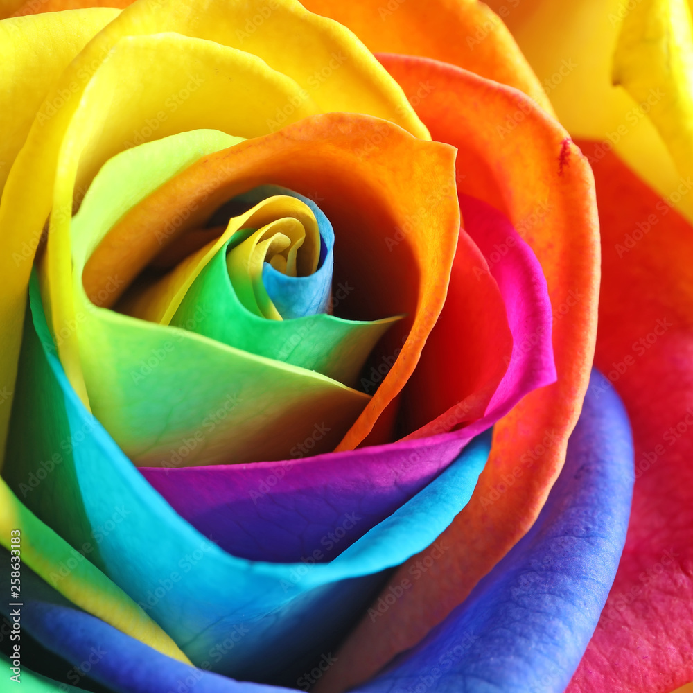Amazing Rainbow Rose Flowers On Color Background Buy This Stock