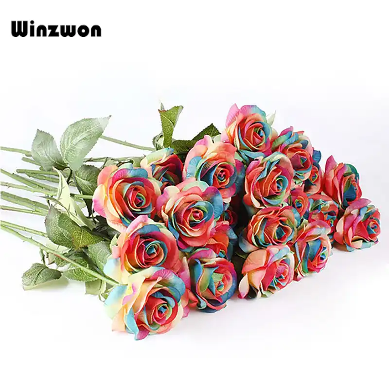 8pcs Lot Rainbow Roses Artificial Flowers Wedding Bride Fake