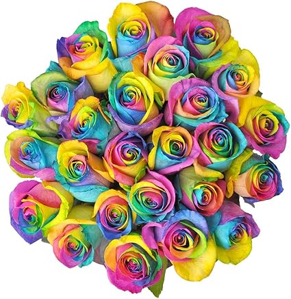Amazon Com Rainbow Roses 25 Stems Fresh Cut Farm Direct