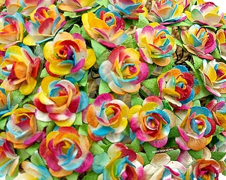 Nava Chiangmai Mini Rainbow Rose Color Mulberry Paper Flower 10 Mm