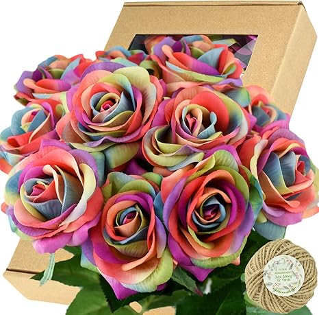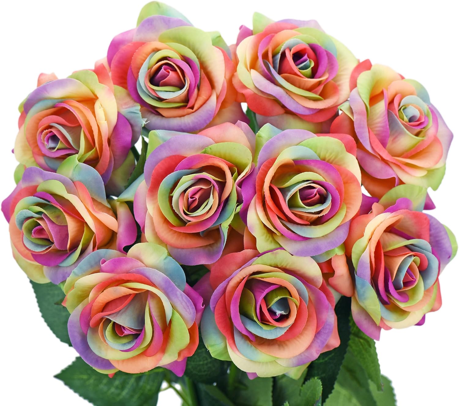 10pcs Colorful Artificial Silk Flower Rainbow Rose Flower Real