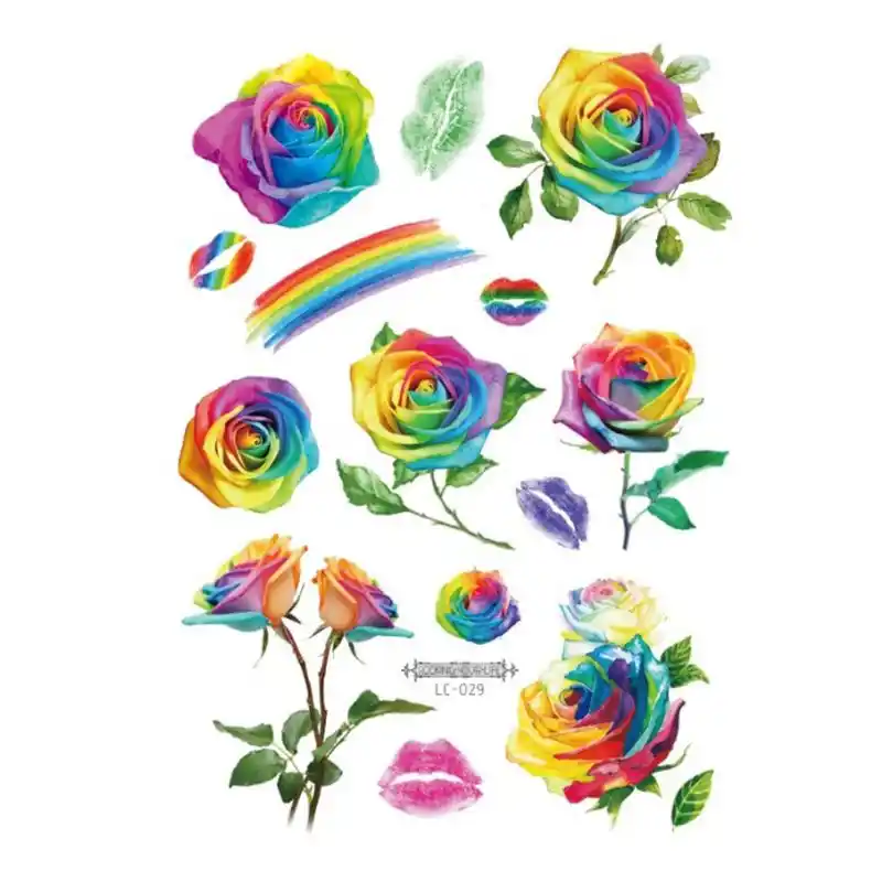 Temporary Tattoo Rainbow Rose Tattoo Floral Tattoo Etsy