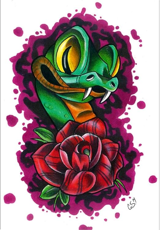 Amazon Com New School Snake By Corey Smola Rose Tattoo Flash