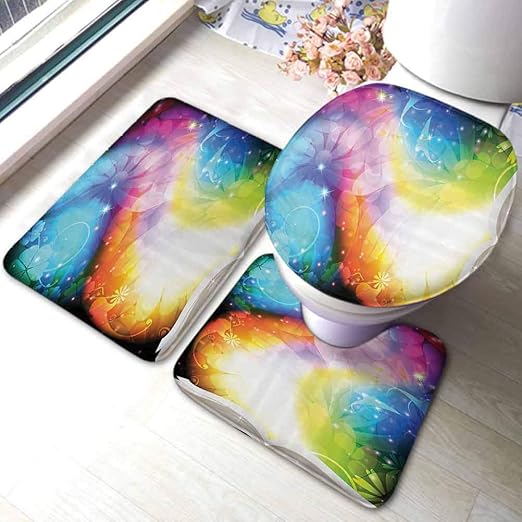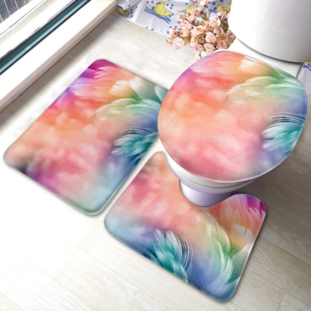 Amazon Com Toilet Rug Set Abstract Feather Rainbow Patchwork