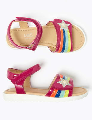 Girls Glitter Rainbow Sandals Double Strap Sandals Strap