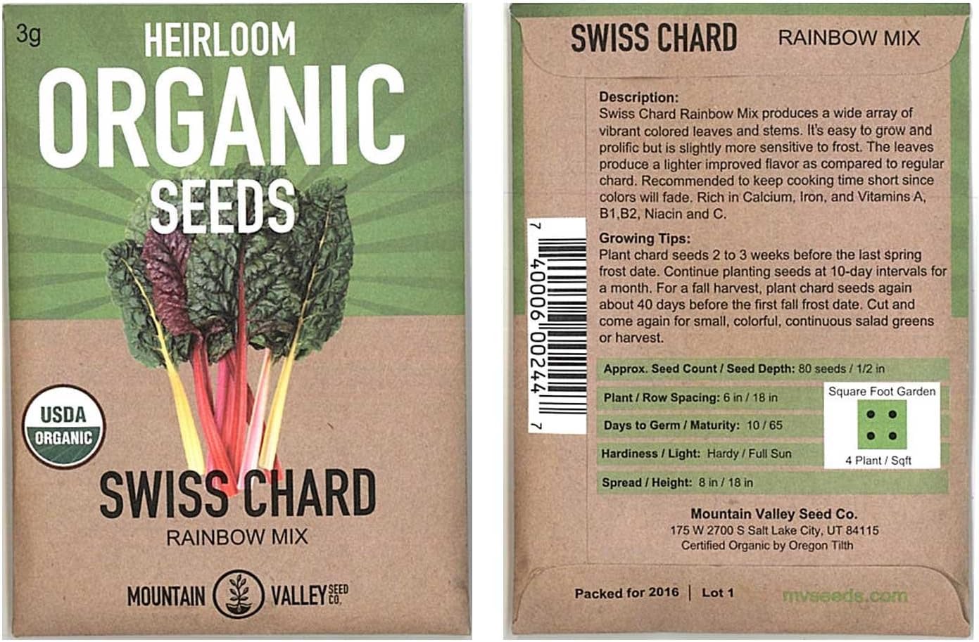Organic Swiss Chard Garden Seeds Rainbow Mix 3 G Packet Non