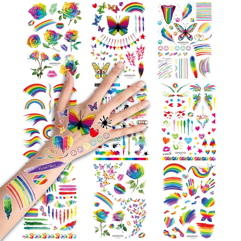 9 Sheets Rainbow Tattoos Rainbow Stickers Temporary Waterproof