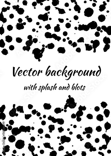Vector Black And White Background With Ink Blots Splash And Brush
