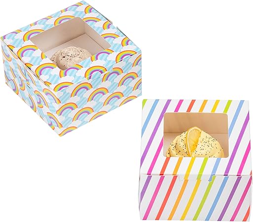 24 Pack Cupcake Boxes Rainbow Themed Individual Containers With Window And Inserts Glossy Bakery Box 2 Designs 5 X 3 X 5 Inches Amazon Co Uk Kitchen Home