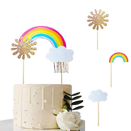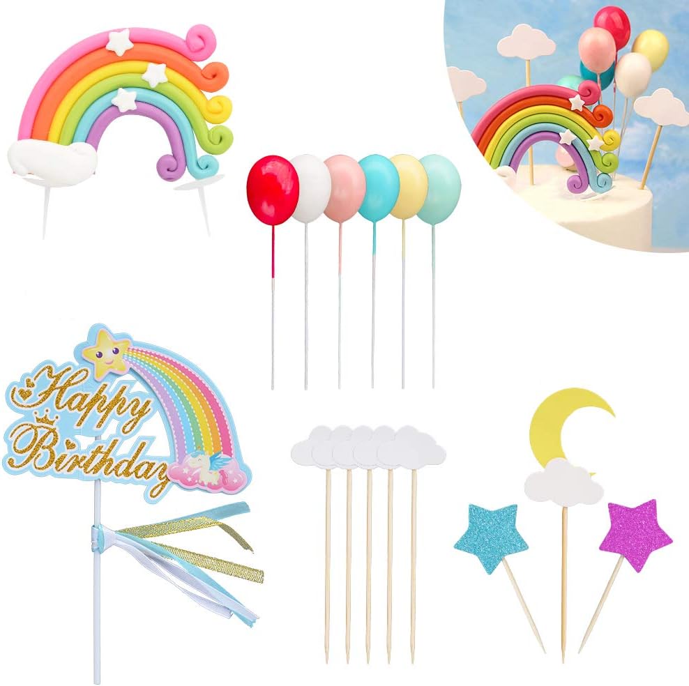 Amacoam Rainbow Cake Topper Cloud Rainbow Balloon Birthday Cake
