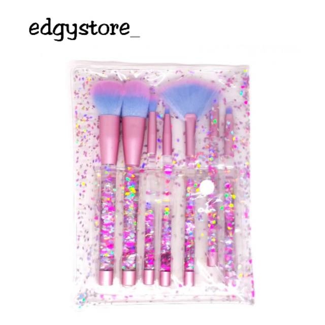 Brush Makeup 7 Set Plus Pouch Crystal Rainbow Transparent Glitter