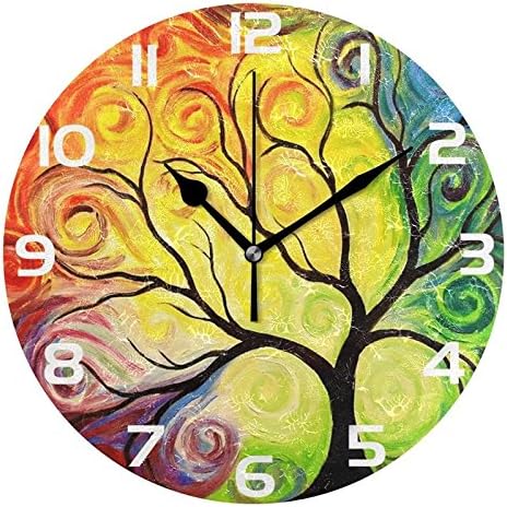 Amazon Com Alaza Rainbow Tree Of Life Round Acrylic Wall Clock
