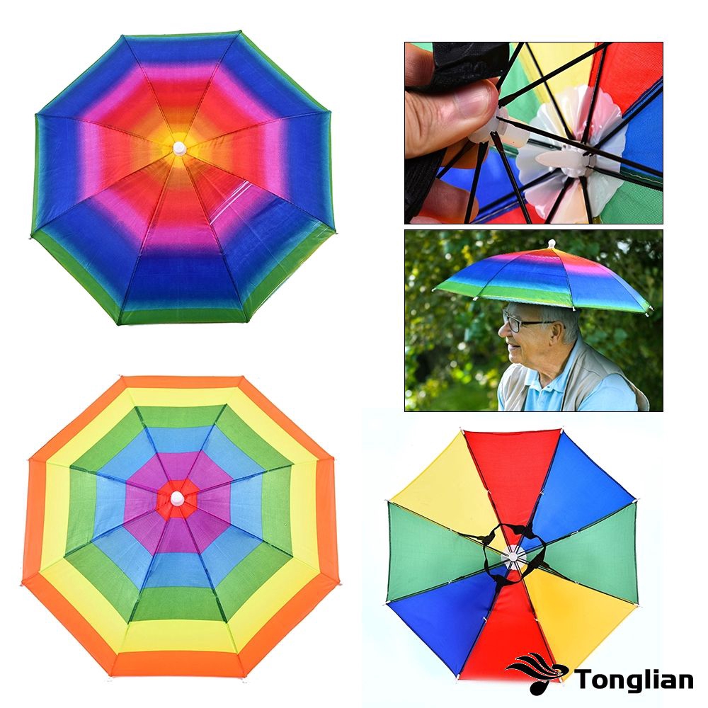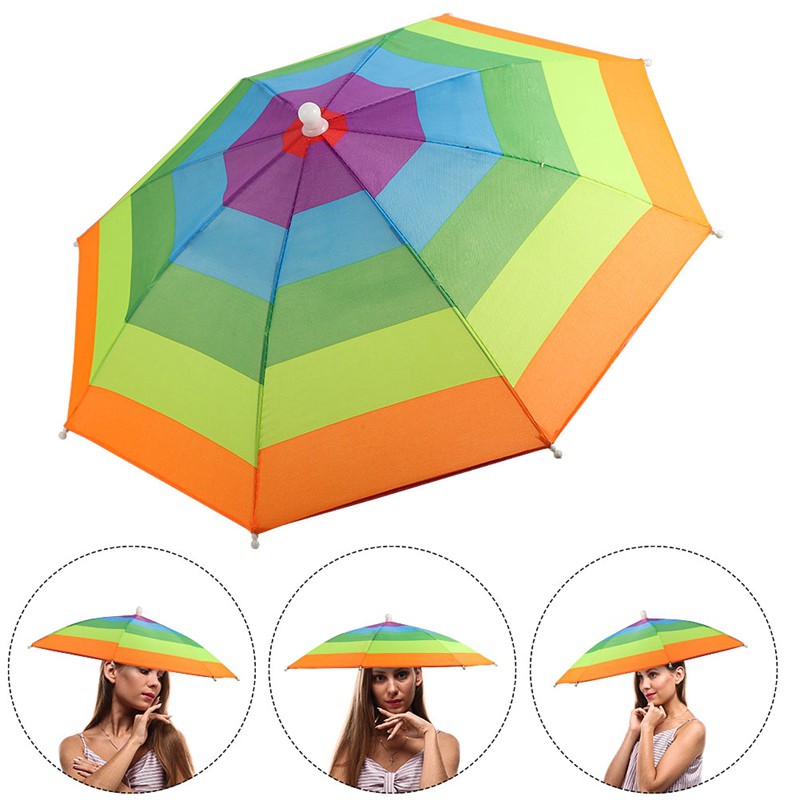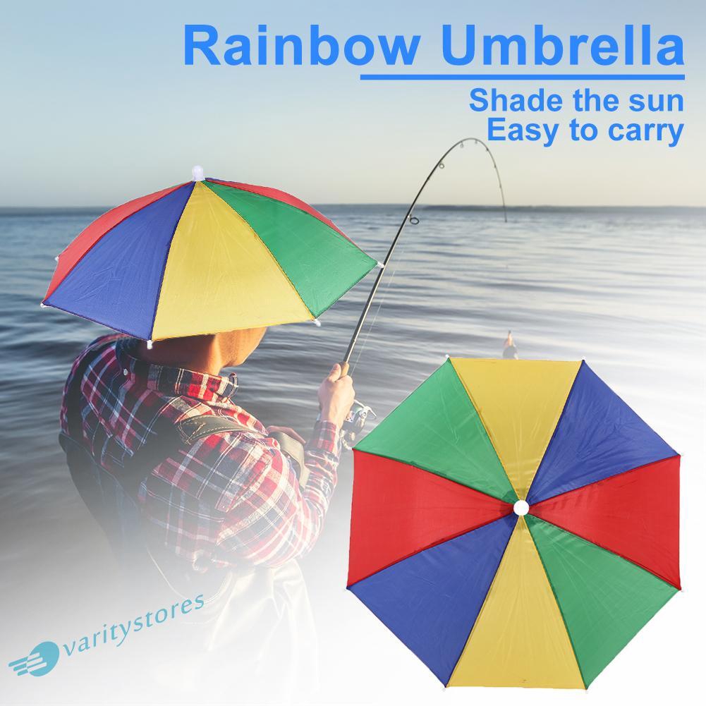 Rainbow Umbrella Hat Outdoor Fishing Mini Sun Rain Headwear
