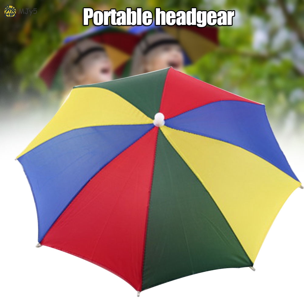 Mjy5 50cm Rainbow Umbrella Hat Foldable Portable For Adults