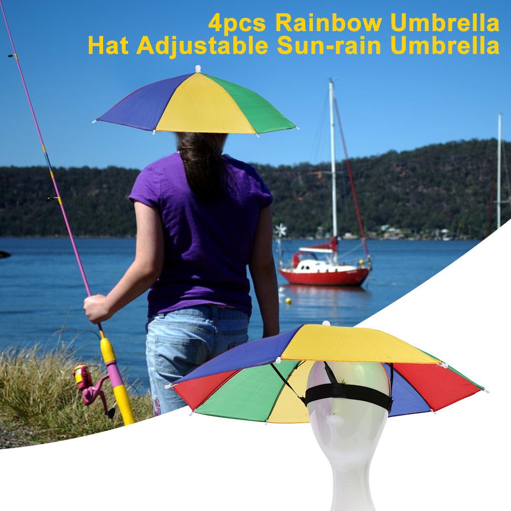 Va 4pcs Sun Rain Rainbow Umbrella Hat Adjustable Outdoor Fishing