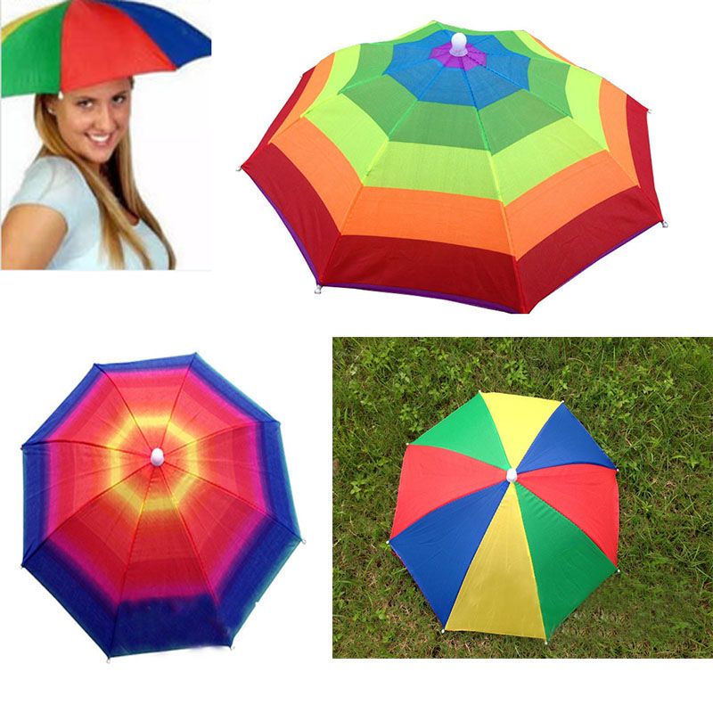 1 Pcs Outdoor Rainbow Umbrella Hat Cap Head Fishing Camping Hiking