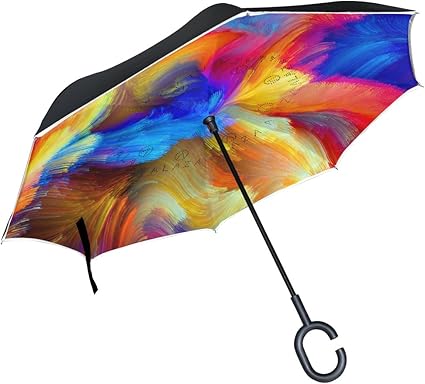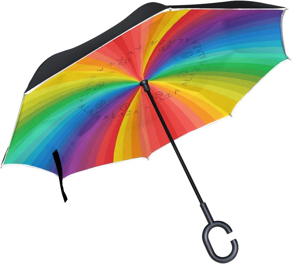 Alinlo Inverted Umbrella Colorful Rainbow Painting Double Layer