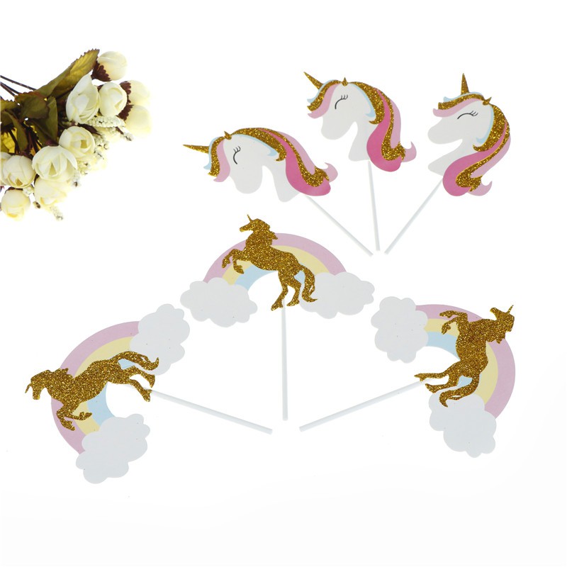 2020 Cute Rainbow Unicorn Cake Toppers Cupcake Wrappers Kids