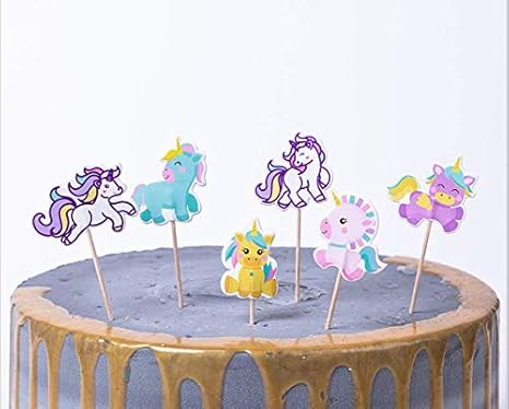 Amazon Com Dooltdy 24 Pieces Rainbow Unicorn Cupcake Toppers