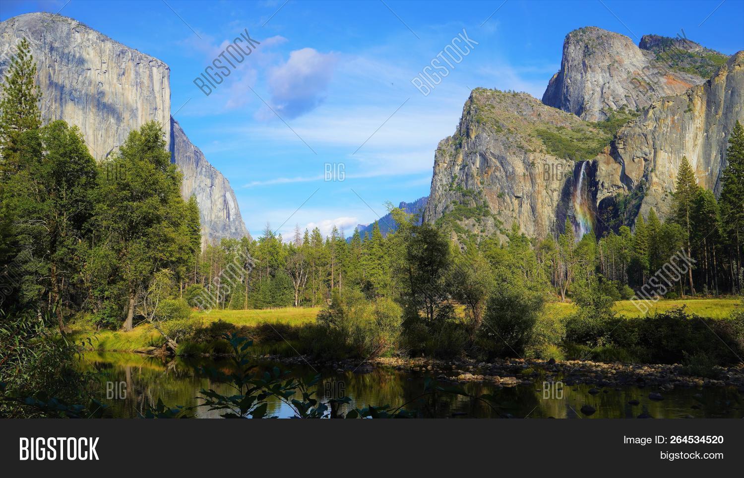California Yosemite Valley Nature Mountain Waterfall Rainbow