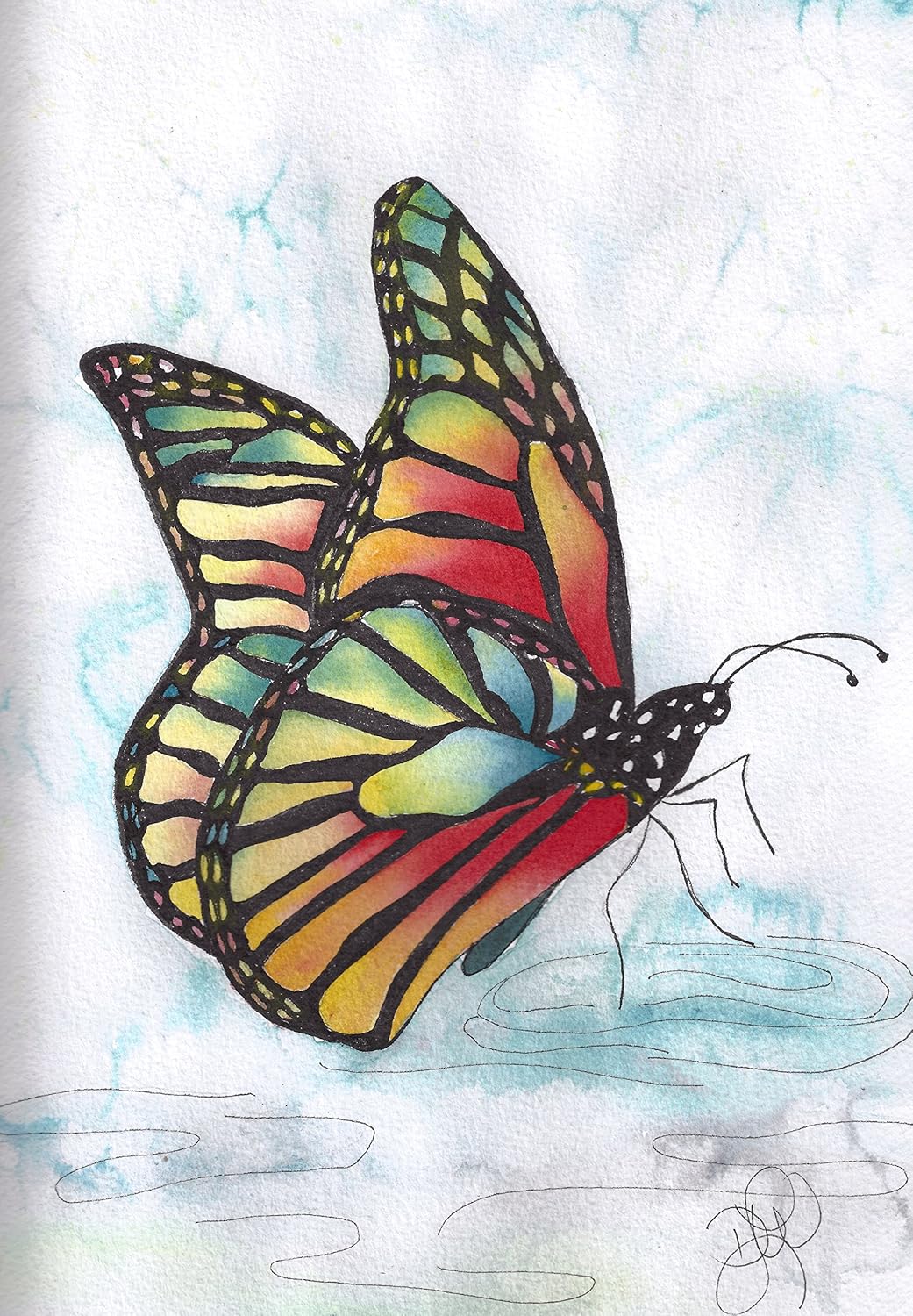 Ink Wash Watercolor Speedpaint Rainbow Butterfly Painting