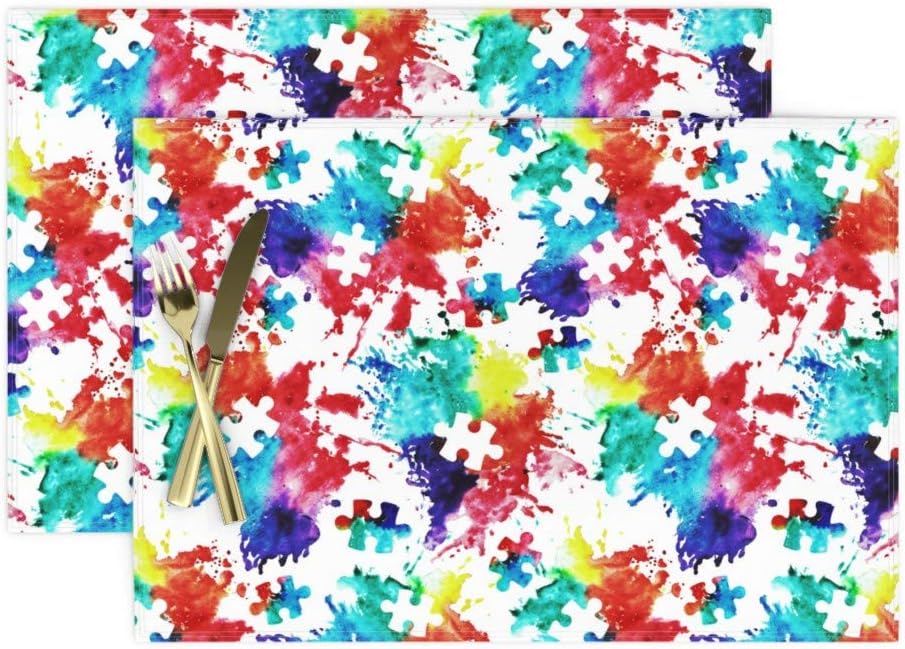 Amazon Com Roostery Cloth Placemats Puzzle Piece Rainbow