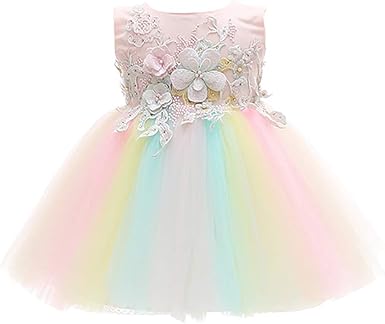Fymnsi Kids Baby Flower Girl Dress Rainbow Tulle Tutu Princess