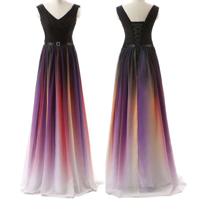 Rainbow White Blue Red Gradient Chiffon Evening Dresses Long Ombre