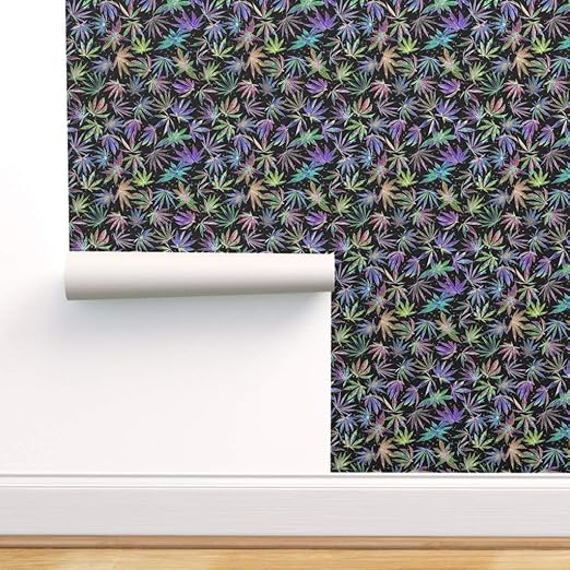 Spoonflower Non Pasted Wallpaper Rainbow Cannabis Weed Leaves