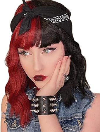 Women Ultra Sexy Scene Wig Black Mixed Wine Red Blonde Rainbow Emo
