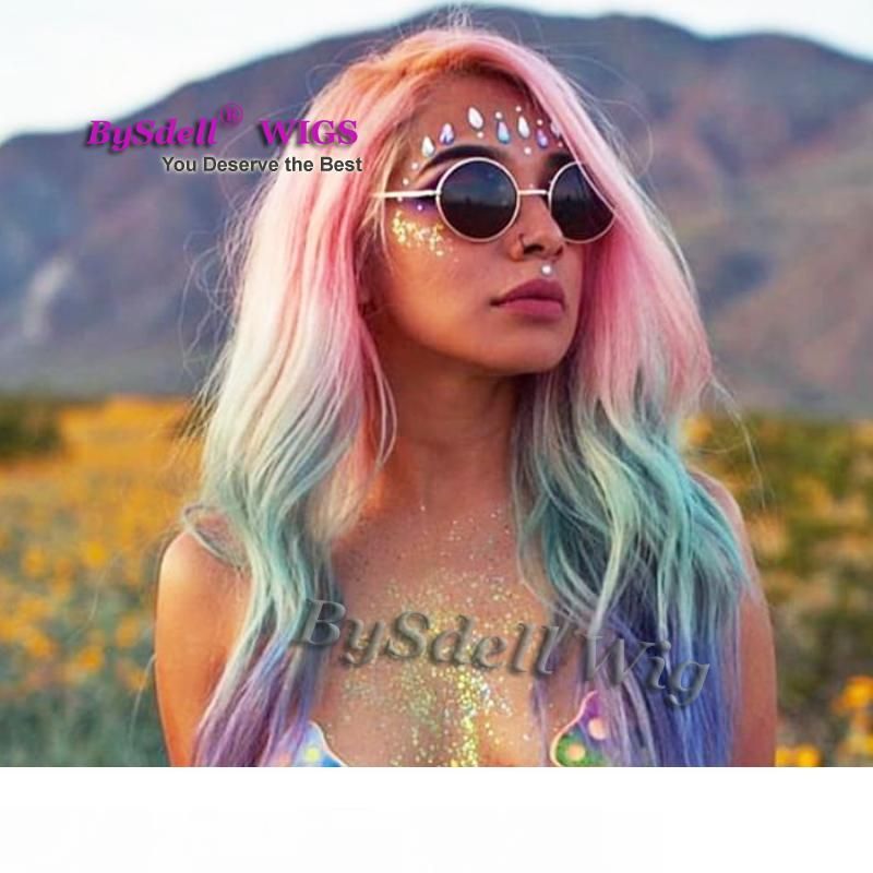 Wavy Lace Front Wig Ombre Rainbow Wig Glory Tress Pink Wig Blue Wi
