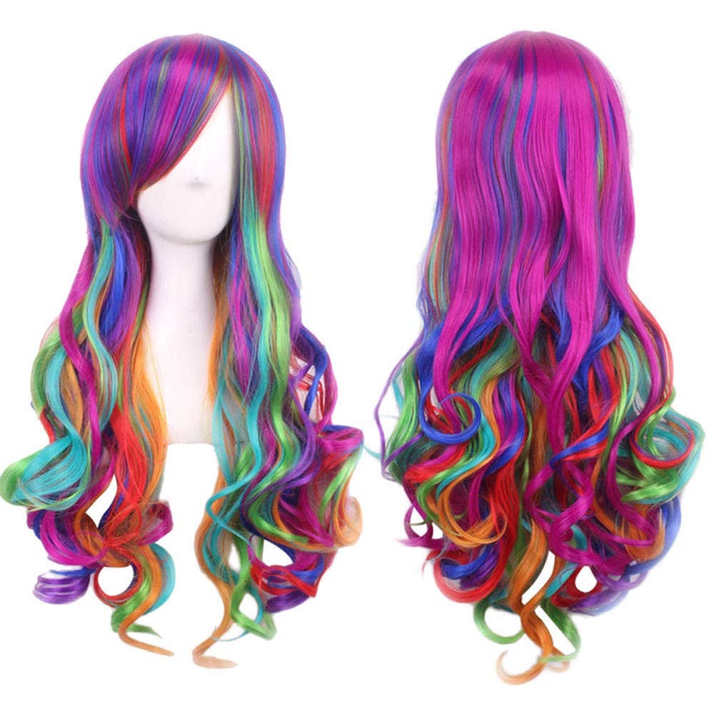 Amazon Com Long Rainbow Wavy Wig Hip Hop Middle Part Synthetic