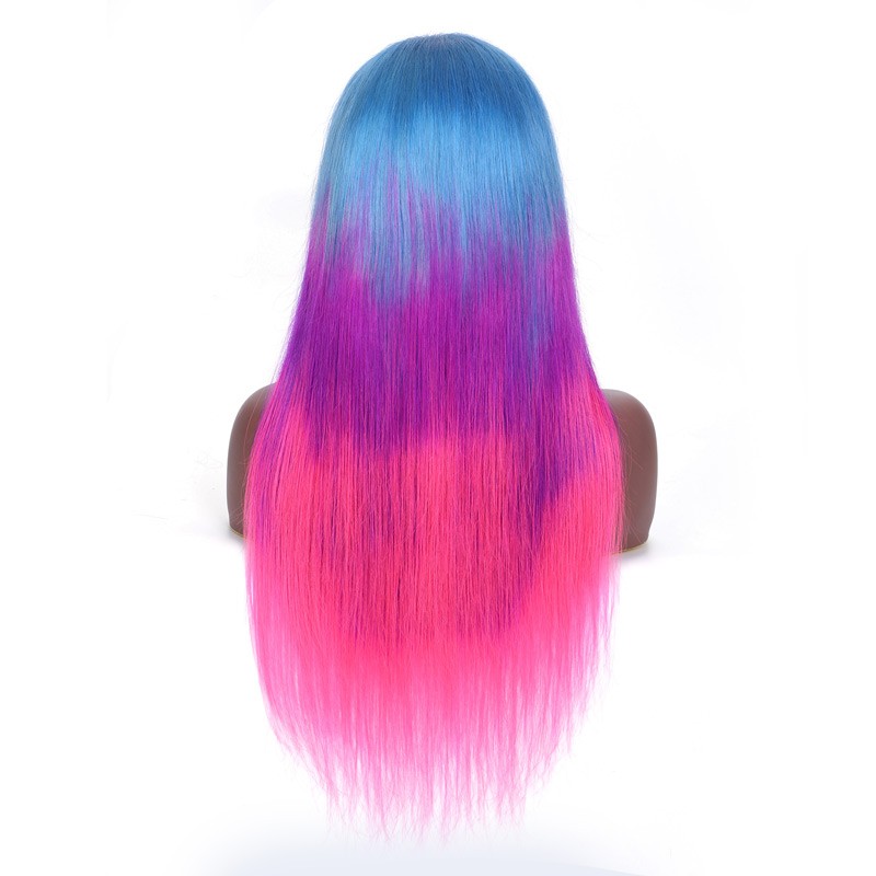 Rainbow Straight Colored Lace Front Wigs Human Hair Ombre Blue