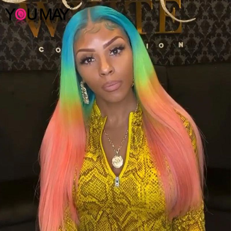 Rainbow Color Brazilian Straight Lace Wig Neshai Fashion More